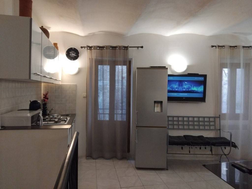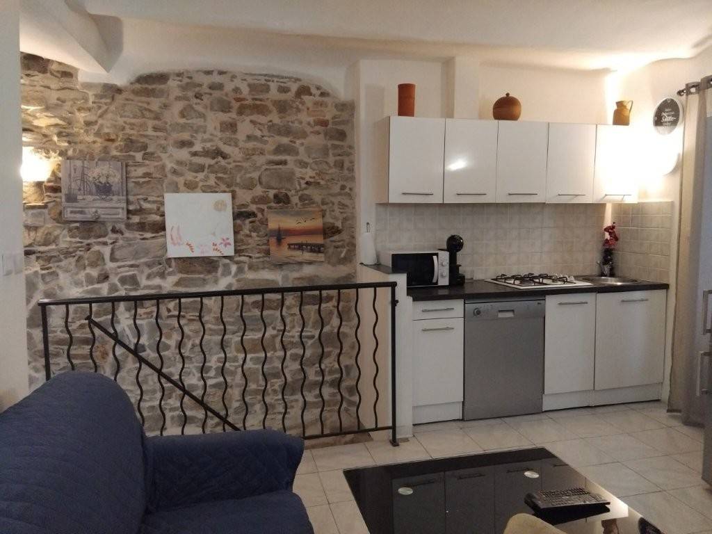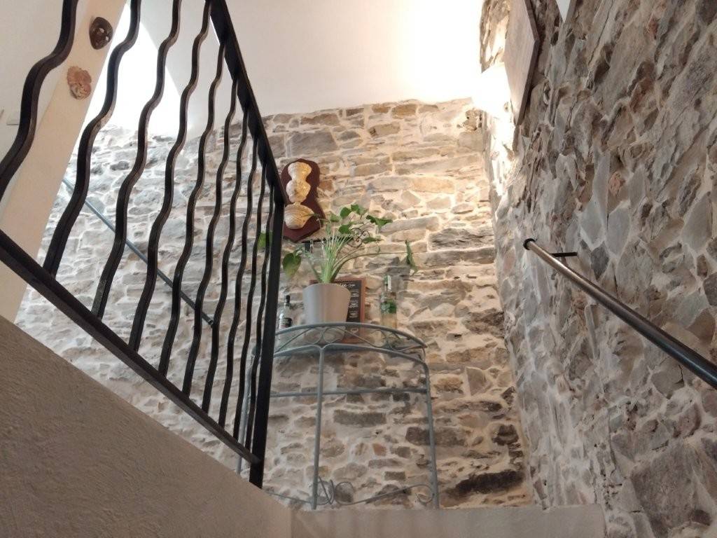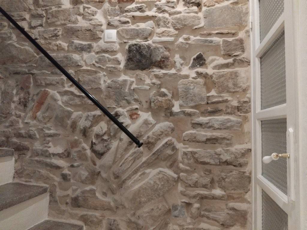 Tastefully renovated apartment in the historic center, simple yet striking. The exposed stonework tells ancient stories of past and present. A great price for a fully renovated apartment with two double bedrooms, a living room with kitchenette, a bathroom with separate toilet, and a sunny terrace with a summer kitchen. Arranged over four levels, like the classic tower houses found in historic centers, the apartment features an entrance and bedroom on the first level, a bedroom, bathroom, and toilet on the second, a living room with kitchenette on the third, and a terrace with kitchen on the fourth.