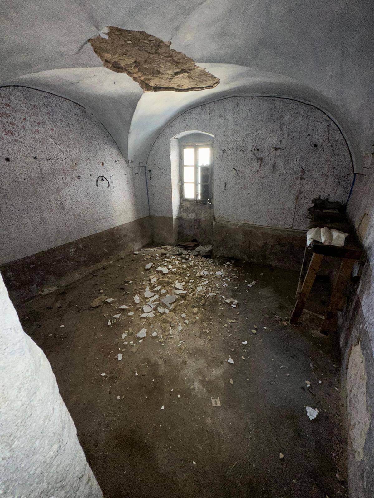i pavimenti sono prevalentemente inesistenti, gli infissi da sostituire e anche le porte interne e la porta di ingresso sono in legno da sostituire.