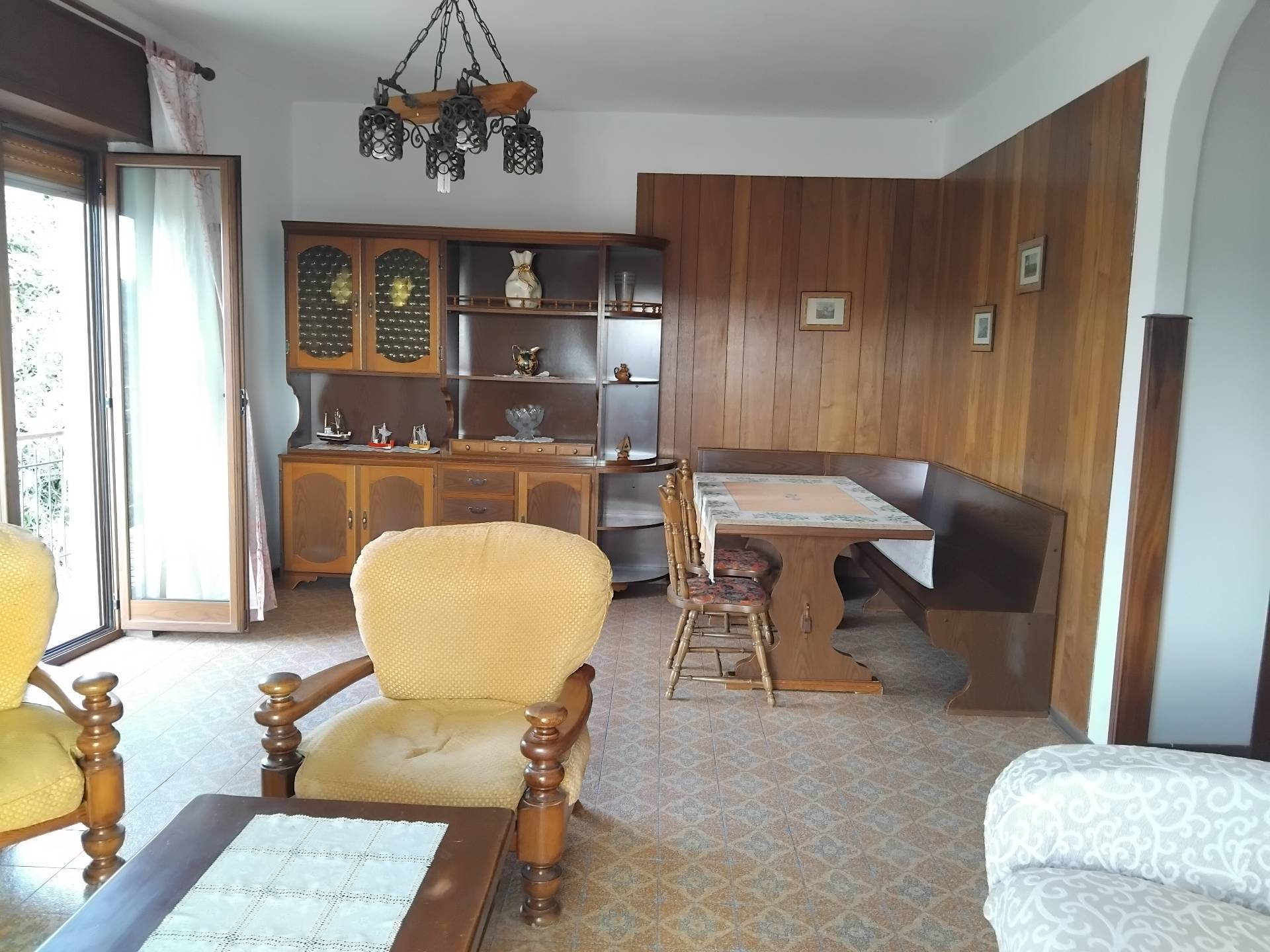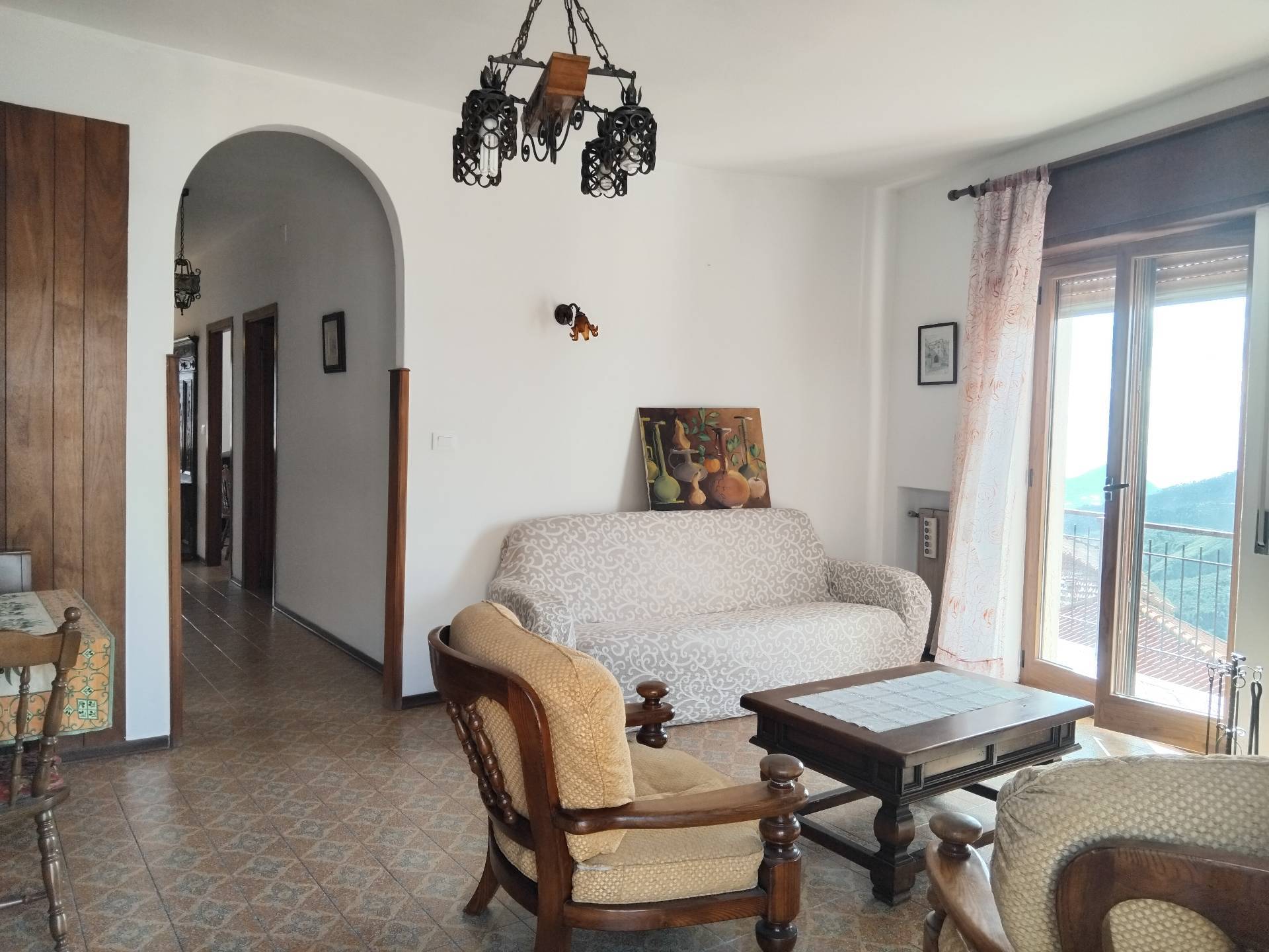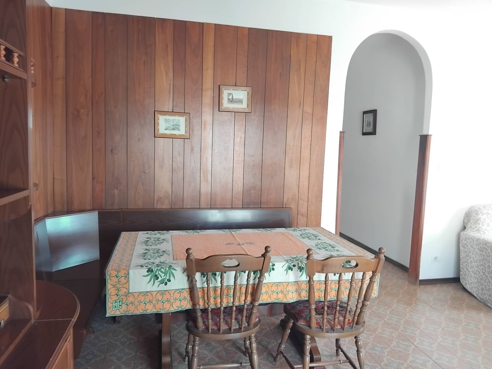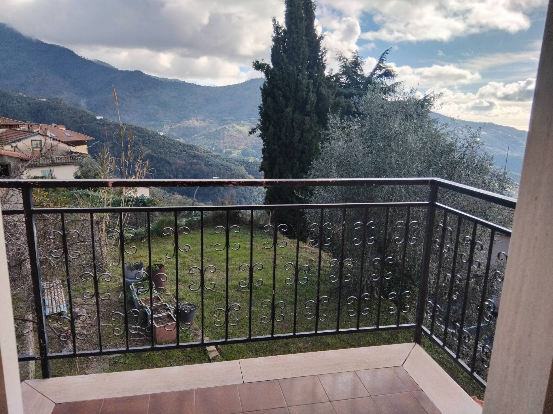 Appartamento su un livello, piano rialzato, ingresso indipendente, balcone che circonda gran parte dell'Appartamento, esposizione sud/ovest, vista mare e monti, anni 60, corridoio centrale , 2 grandi camere da letto, grande soggiorno con caminetto, cucina separata, bagno e ripostiglio spazioso, tutte le stanze con finestra. Entrata con scala e balconcino vista monti e mare, in paese, vicino ai servizi. Riscaldamento con caldaia a gas.