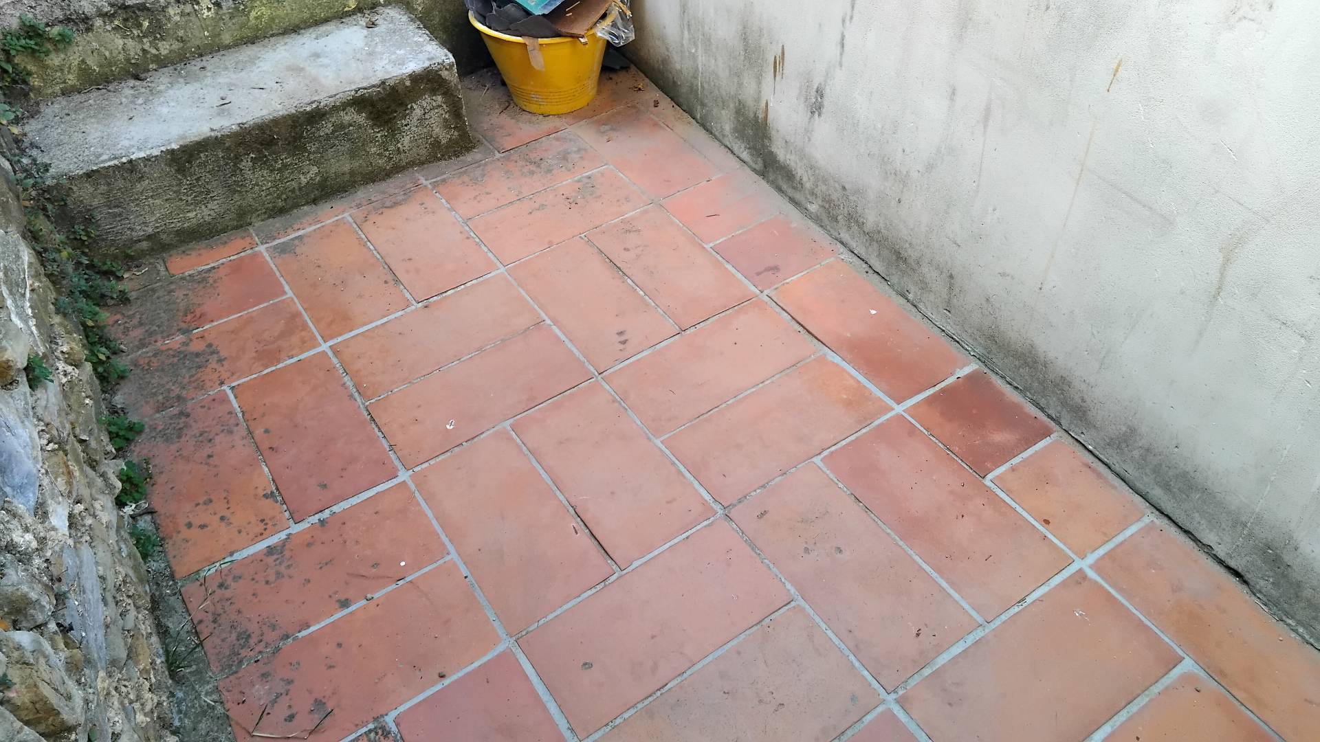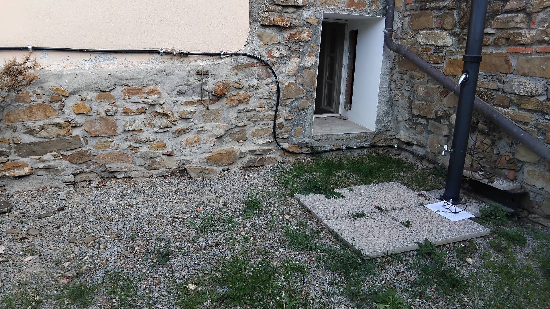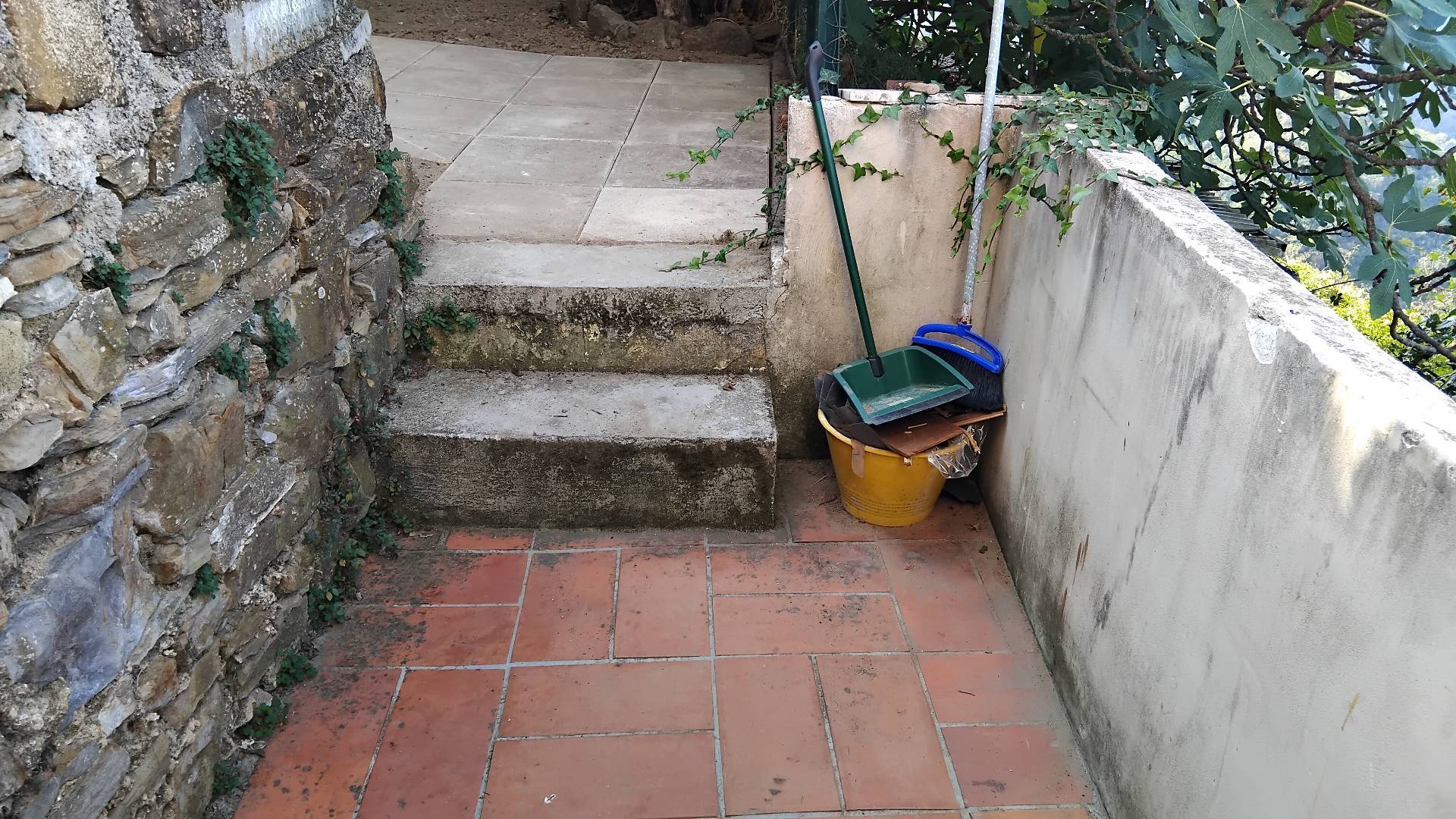 Tra la cucina e il salottino, ci sono pochi scalini che conducono al piano rialzato, sulla sinistra si trova la zona armadi, di fronte un vano di passaggio. e per ultimo abbiamo grande bagno con doccia e impianto di aspirazione. Sulla destra una piccola finestra ci fa godere della vista sul giardino.
