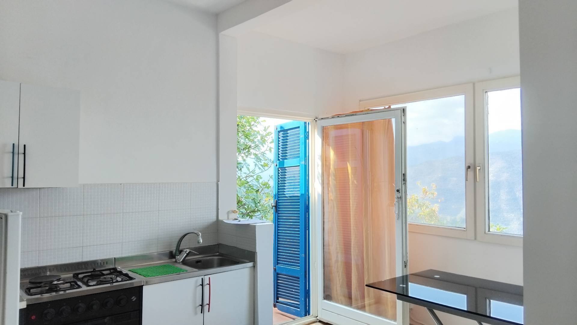 Questo Appartamento situato a nord del paese, è uno dei rari appartamenti ad avere il giardino dal quale si accede all'immobile. Entrata in cucina, piccolo salottino con divano letto adibito a zona giorno/notte.