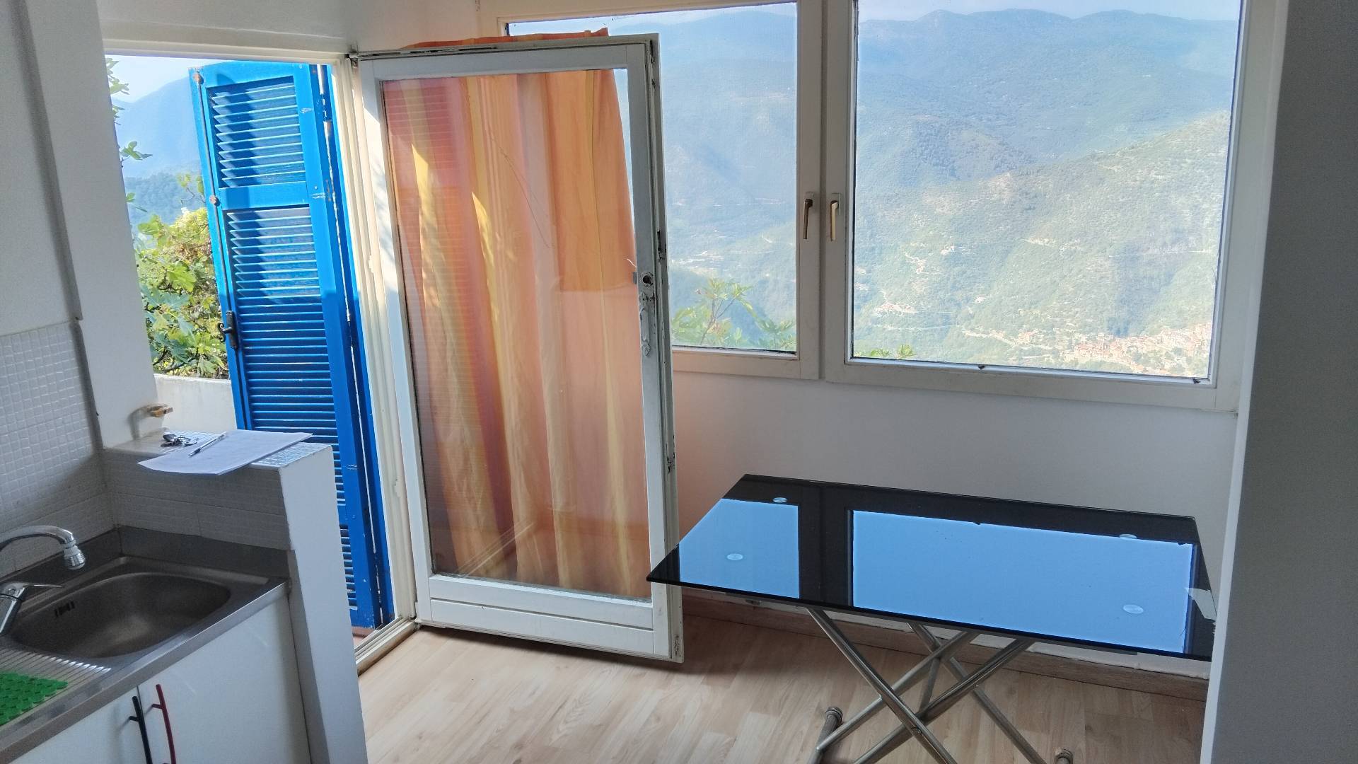 Dalla cucina e dal salottino ampie finestre ci permettono di ammirare una splendida vista panoramica sui monti e le alpi.